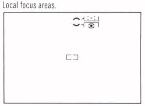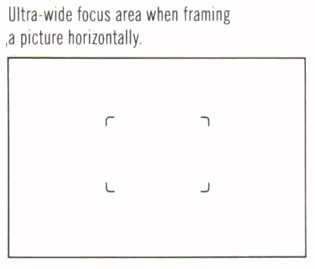 In most situations, the Dynax 9xi's ultra-wide focus area, using four AF sensors, appears in the viewfinder. When you hold the camera vertically the optimum focus frame for vertical shots, using three AF sensors, is automatically indicated. One of four local focus areas may also be temporarily selected using the Quick button or locked using the function button and front control dial. | |