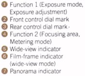 Pressing the function button once lets you monitor the current function assignments when you select an exposure mode with the front control dial and adjust an exposure setting using the rear control dial. | ![]() |