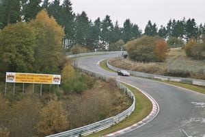 I invited Sir B. for a lap in the SquealMobile, but the good Sir had a better idea: we would go out together, he in his BastardWagen, and I in the SquealMobile. Uhuh, the BW has more power, better suspension, less weight, and a more experienced (certainly older) driver. Naturally the BW was glued to my rear bumper during the first half of the lap. At least I managed to pull away a little after the compression in Fuchsröhre :) However, I messed up Ex-Mühle a bit, and Karl decided he'd had enough before we came to Maddock bend. The rest of the lap I had some fun with a red 'mericun thing (fast on the straights, but not so quick in the twisty bits) and a Citroen XM. The XM came in view at Steilstrecken, and bit by bit I reeled him in until I went through Pflanzgarten III quite a bit faster, allowing me to follow him closely through Schwalbenschwanz and Galgenkopf. I decided to head out immediately for a second lap (#3 of the day). This time I had Christer behind me, in the 180bhp TT. I must admit that I didn't really wait for him, as a 50% power advantage over the SquealMobile should enable him to catch up easily. Which he did around Aremberg. Two cars next to each other in a damp Fuchsröhre can be quite tight, but it helps a lot if you know the other driver. Not to mention that it beats the alternative of having someone on your bumper with his emergency indicators on ;-) Strengthened by my previous experience through the Fuchsröhre compression I kept it nailed all the way through, blipped the throttle to go back into 4th for the fast left-hander, and managed to regain a little ground on the TT. Said TT promptly made the most of its grip and power by disappearing between Adenauer Forst and Metzgesfeld. A little later in the lap the gap had grown: Christer was just going through Bergwerk when I got my first view of the corner. This was also the last I saw of the TT during that lap. At least I was getting a feel for what the SquealMobile would do under the circumstances. Having done relatively few laps in the SquealMobile this year it took some time getting myself dialed in. By this time I was back to taking Fuchsröhre and Mutkurve flat, for example. Up Kesselchen I was slowly gaining on an E-30. Until we came to Mutkurve, where he dabbed the brakes and I kept giving the SquealMobile the spurs. He courteously made some room for me, allowing me to go through without losing momentum. Thanks, whoever you are! By this time it was 16.00 hours. When I arrived the sign at the entrance said that the track would close at 16.00 (but it didn't say if they meant 16.00 DST or standard time...) The track was still open, so I went straight out again for a third lap. During this lap there was hardly any traffic. I experimented a bit with gear choices: the SquealMobile can't pull 4th up the hill from Karussell to Hohe Acht, forcing me to downshift into 3th halfway. This time I kept it in 3rd all the way. The SquealMobile has a very soft and progressive rev limiter, so it wouldn't upset the car much if I ran into it. As it turns out I stayed a touch below the rev limiter, but the section from Karussell to Hohe Acht was definitely faster this way. Before, grip wasn't an issue. Now, the front tyres were squealing like they're supposed to when cornering. I tried the opposite in Pflanzgarten: normally I brake a bit before the jump, land, brake and downshift into 3rd before climbing the hill. On this lap I decided to keep it in 4th. Thanks to carrying a touch more speed than on previous visits I made it up the hill in 4th without lugging the engine at lowish revs too much. A definite improvement. Galgenkopf was interesting in that on both right-handers the traction control started flashing. That doesn't happen when the track is fully dry... All in all it was a very decent lap, which was confirmed by a little bird that told me that I'd just done a 10.00 BTG lap on hot brakes, hot tyres and a damp track. Not bad, considering that 9.57 BTG is the fastest I've ever done in the SquealMobile on a completely clear lap under perfect circumstances. Euan kindly provided me with an intermezzo by taking me round in the 968. He was taking it easy, resulting in 8.45 BTG on regular road tyres. Always nice, a lap in a 968CS :-) And it gave us a chance to catch up a little. After a short break I decided that getting home at a reasonable hour had some serious benefits. Having said my goodbyes I noticed that the track was still open and decided it would be rude not to do one more lap. After reading messages on the Ringers list of people advocating doing a lap without braking I decided to give that a try. I switched the GPS on to see if I could get a tracklog of the Nordschleife. Apparantly Garmin doesn't know about the Ring yet :) The no-braking approach worked reasonably well, but despite taking it very easy round Schwedenkreuz I figured it might be a good idea to do some braking before Aremberg :) Going down Fuchsröhre I saw some familiar headlights appearing in my rearview mirror: Euan's 968 was approaching, at speed (naturally). Of course I decided to forget about the no-braking approach, kept it nailed, and made room for him exiting Adenauer Forst. I managed to keep Euan in sight until Ex-Mühle but didn't see him during the rest of the lap :)